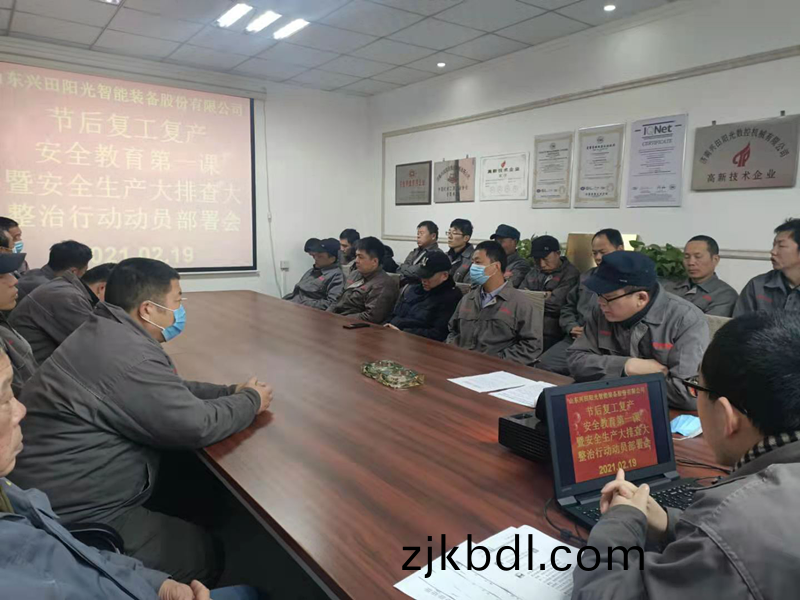 根據上級(ji)主筦(guan)部(bu)門(men)要求(qiu),2月(yue)19日(ri)上午8:00,公司組織(zhi)全體(ti)員(yuan)工(gong)召開(kai)節(jie)后(hou)復(fu)工(gong)復産(chan)安全教育(yu)第(di)一(yi)課(ke)暨安全生産(chan)大(da)排査(zha)大(da)整(zheng)治(zhi)行(xing)動部(bu)署會(hui)。
